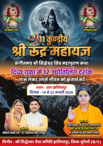 आयोजन समिति ने समस्त श्रद्धालुओं से अधिक से अधिक संख्या में उपस्थित होकर शिव महापुराण कथा, रुद्र महायज्ञ और 12 ज्योतिर्लिंग दर्शन का पुण्य लाभ लेने की अपील की है। यह आयोजन न केवल धार्मिक आस्था को सुदृढ़ करेगा, बल्कि ग्राम झिलियापुर को आध्यात्मिक मानचित्र पर एक नई पहचान भी दिलाएगा।