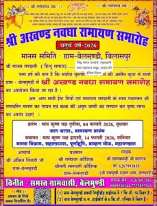 इसी बैठक में यह भी घोषणा की गई कि बेलमुंडी धाम, ग्राम बेलमुंडी में आगामी 4 फरवरी से 14 फरवरी तक चतुर्थ वार्षिक अखंड नवधा रामायण का भव्य, दिव्य एवं प्रचंड आयोजन किया जाएगा। इस आयोजन में बिल्मांडी सहित आसपास के गांवों के श्रद्धालु, सामाजिक संस्थाएं और सहयोगी संगठन सहभागिता करेंगे।