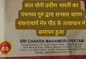 छत्तीसगढ़ के सरगांव क्षेत्र अंतर्गत मनिहारी नदी के पावन तट पर स्थित श्री सच्चिदानंद तीर्थ महा स्वामिगल, श्री चक्र महामेरू पीठम (बिलासपुर-मुंगेली) के तत्वाधान में एक भव्य पंचगव्य संन्यास संस्कार का आयोजन किया गया। इस अवसर पर विश्व मानव परमार्थ ट्रस्ट के राष्ट्रीय सह प्रभारी एवं छत्तीसगढ़ प्रभारी प्रवीण भारती ने गुरु-शिष्य परंपरा के अनुसार संन्यास धारण किया।