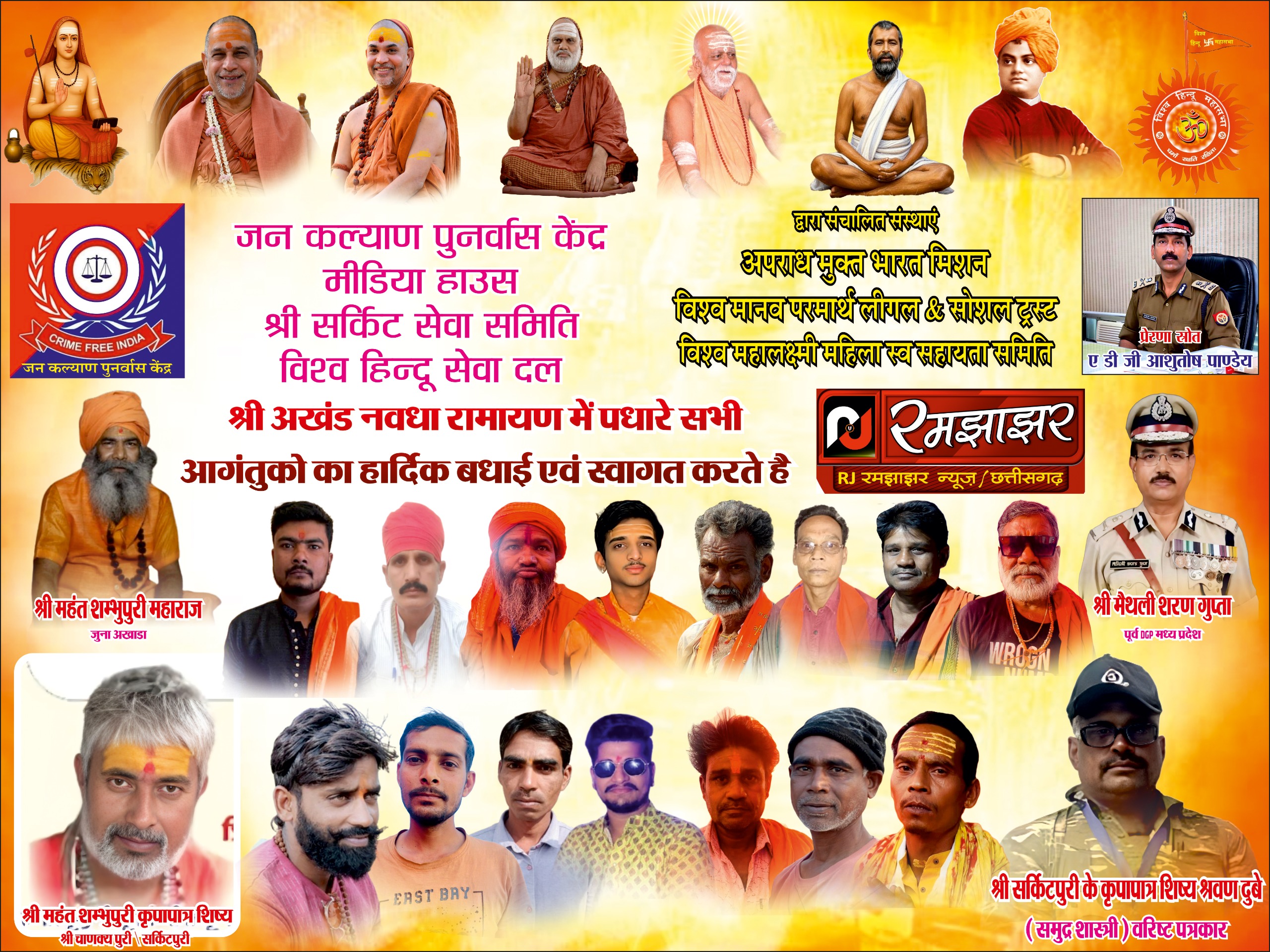 श्री चाणक्य चैतन्यपुरी उर्फ सर्किट पुरी बाबा जी के मार्गदर्शन में आयोजित इस धार्मिक अनुष्ठान के अंतर्गत 11 सूत्रीय कार्य-योजना के माध्यम से सामाजिक एवं धार्मिक सेवा को सुदृढ़ करने का संकल्प लिया गया। इसी क्रम में विभिन्न सामाजिक संस्थाओं के नव-निर्वाचित पदाधिकारियों को “ऑन जॉब ट्रेनिंग” के माध्यम से संगठनात्मक प्रशिक्षण भी प्रदान किया गया।