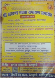 अखंड नवधा रामायण के माध्यम से ग्राम बेलमुंडी में भक्ति, सेवा और संस्कार का संदेश जन-जन तक पहुँचाया गया, जिससे क्षेत्र में सकारात्मक वातावरण का निर्माण हुआ।