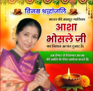 जन कल्याण पुनर्वास केंद्र मीडिया हाउस, बोदरी एवं बोदरी तहसील कार्यालय द्वारा विश्व सुविख्यात गायिका, सुरों की साधिका और ‘पद्म विभूषण’ से सम्मानित श्रीमती आशा भोसले जी के निधन पर गहरा शोक व्यक्त किया गया है। उनका जाना न केवल संगीत जगत, बल्कि संपूर्ण कला जगत के लिए एक ऐसी अपूरणीय क्षति है, जिसकी भरपाई कभी संभव नहीं होगी।